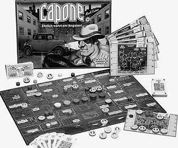 Die Vorschusslorbeeren ließen ein absolutes Spitzenspiel erwarten. Es war nicht neu, sondern 1987 das erste Mal mit dem Namen Mafioso erschienen. Capone habe das Zeug zum Klassiker und sei "extrem spannend", meinte der begeisterte Kritiker die Fachzeitschrift Pöppel-Revue ohne Umschweife. Dies ist eine Einschätzung, die bestätigt werden kann, auch wenn Capone kein besonders innovatives Spiel ist. Jede SpielerIn hat fünf Karten (bei sechs MitspielerInnen nur vier) auf der Hand, die reihum ausgespielt werden. Abgesehen von einigen Aktionskarten zeigen die Karten Geschäfte, die auch auf dem Spielbrett abgebildet sind. Mit dem Ausspielen einer Geschäftskarte werden beliebig viele der Spielfiguren, die vor einer stehen, als Einsatz auf das Geschäftsfeld gestellt. Wenn eine MitspielerIn die gleiche Geschäftskarte ausspielt, ist dieser Einsatz weg, und die MitspielerIn übernimmt mit höherem Einsatz das Geschäftsfeld. Wenn der Einsatz, die Spielfiguren, bis zum Ende eines Jahres - alle Karten sind ausgespielt - in dem Geschäft durchhält, wird er von der Bank in Dollar ausgezahlt.