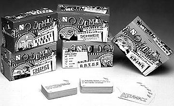 Urs Hostettler hat ein Spiel entworfen, das sehr an sein Ein solches Ding erinnert. Anno Domini ist in verschiedenen thematischen Sets erschienen – und jedes Jahr kommen neue hinzu. Empfehlenswert ist es, zwei Sets miteinander zu mischen, damit eine gewisse thematische Breite entsteht. Für den Anfang reicht aber auch ein Set aus, um viel Spaß zu bekommen.