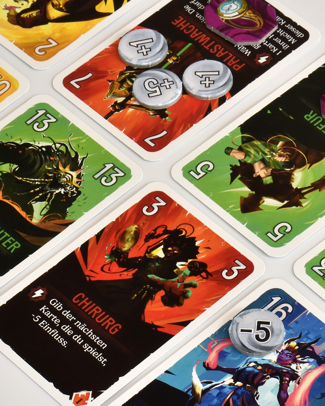 Thema und Titel bleiben etwas blass: „Cardia“ klingt eher medizinisch als magisch. Dafür überzeugt das Spiel durch klare Texte auf den Karten und eine dynamische Mechanik mit Rückwirkungen einzelner Fähigkeiten.