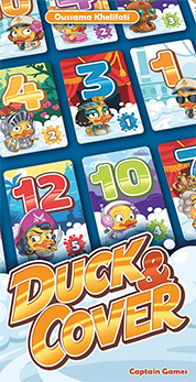 Bei Duck & Cover können, was ungewöhnlich ist, bis zu sieben Leute mitmachen. Selbst wenn man in großer Runde an einem Tisch sitzt, ist niemand ausgeschlossen – was zudem von der leichten Zugänglichkeit unterstützt wird, denn der Ablauf ist mit wenigen Sätzen erklärt. Gespielt werden drei schnelle und garantiert spaßige Runden.