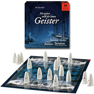 Einfacher können Spielregeln kaum noch sein, trotzdem ist Geister ein außergewöhnlich spannendes Zwei-Personen-Spiel. Es ist eigentlich ein Spiel ganz ohne Glückselemente, denn ich muss bloß durchschauen, wo mein Gegenüber seine guten Geister hingestellt hat. Also ist es doch ein Spiel mit Glücksanteil, und zwar einem außerordentlich raffinierten.