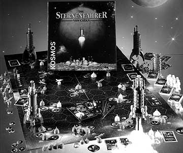 Erstmals gibt es ein Spiel mit der Bezeichnung Catan, bei dem sich die SpielerInnen mit ihren Schiffen richtig fortbewegen müssen. Bislang wurden Straßen oder Seehandelswege nach und nach zu einem Netz ausgebaut, jetzt ziehen Schiffe mittels einer Art Würfel flott durch die Tiefe des Raumes. Klaus Teuber legt Wert darauf, dass dies ein wesentlicher neuer Spielmechanismus sei, der die Sternenfahrer zu einem eigenständigen Spiel macht. Die Sternenfahrer sind also keine Siedler-Erweiterung. Doch warum tragen sie den Begriff Catan im Titel, wo doch auch der thematische Sprung von der kleinen catanischen Insel in ein Science-fiction-Szenario mehr als gewagt ist? Teuber antwortet auf diese Frage, dass er sich nicht - wie dies anderen Autoren geschehe - den Vorwurf gefallen lassen möchte, er würde sich heimlich selbst kopieren. Da schreibt Klaus Teuber lieber direkt in den Titel des Spiels, wo die Ursprünge des Spielmechanismus liegen.